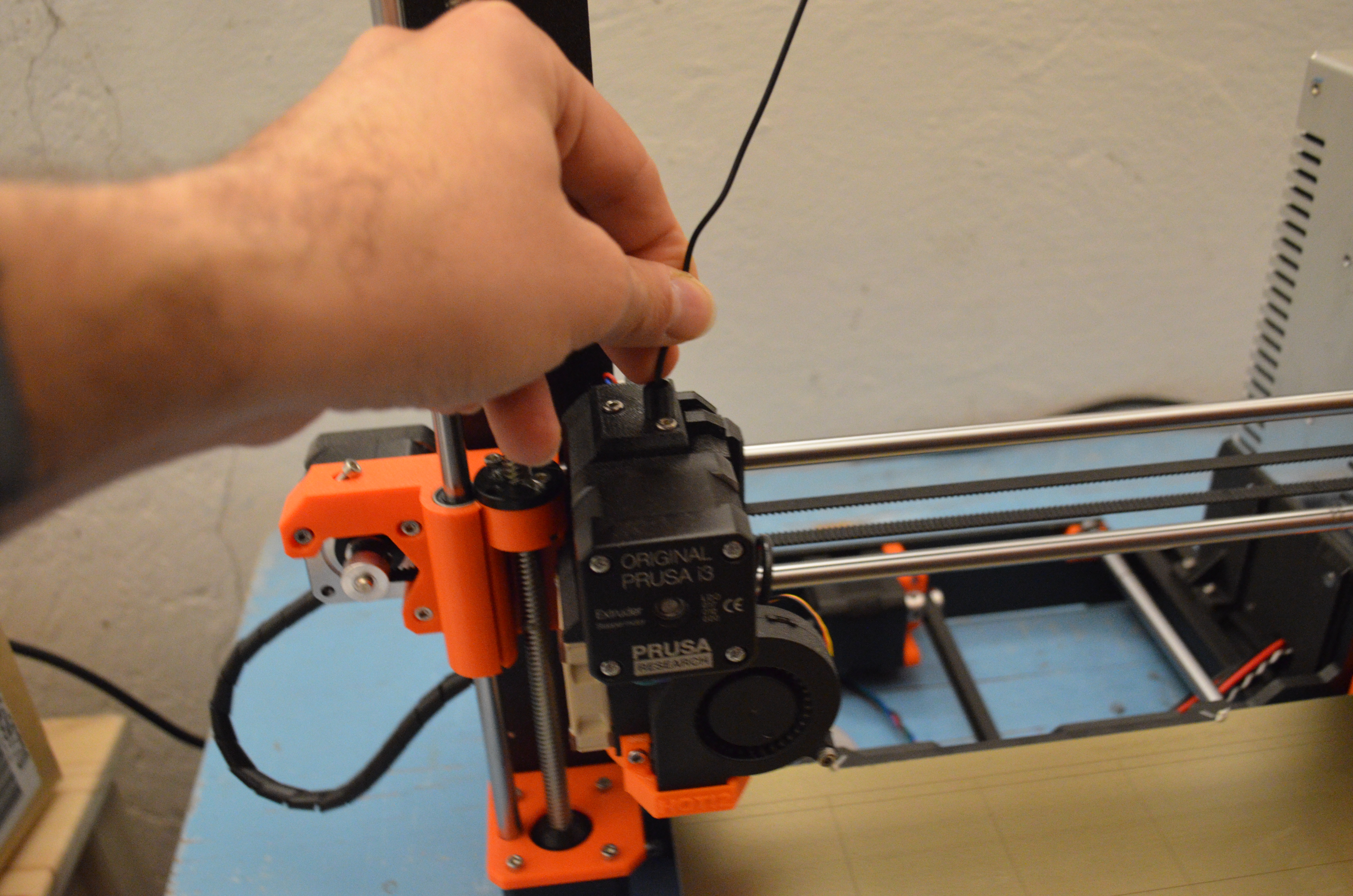 4. Insert the lead of the filament into the hole on top of the extruder.